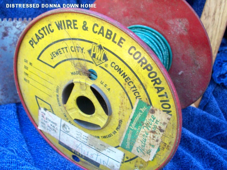 Already fabulous is the vintage tin red and yellow spool of cable.